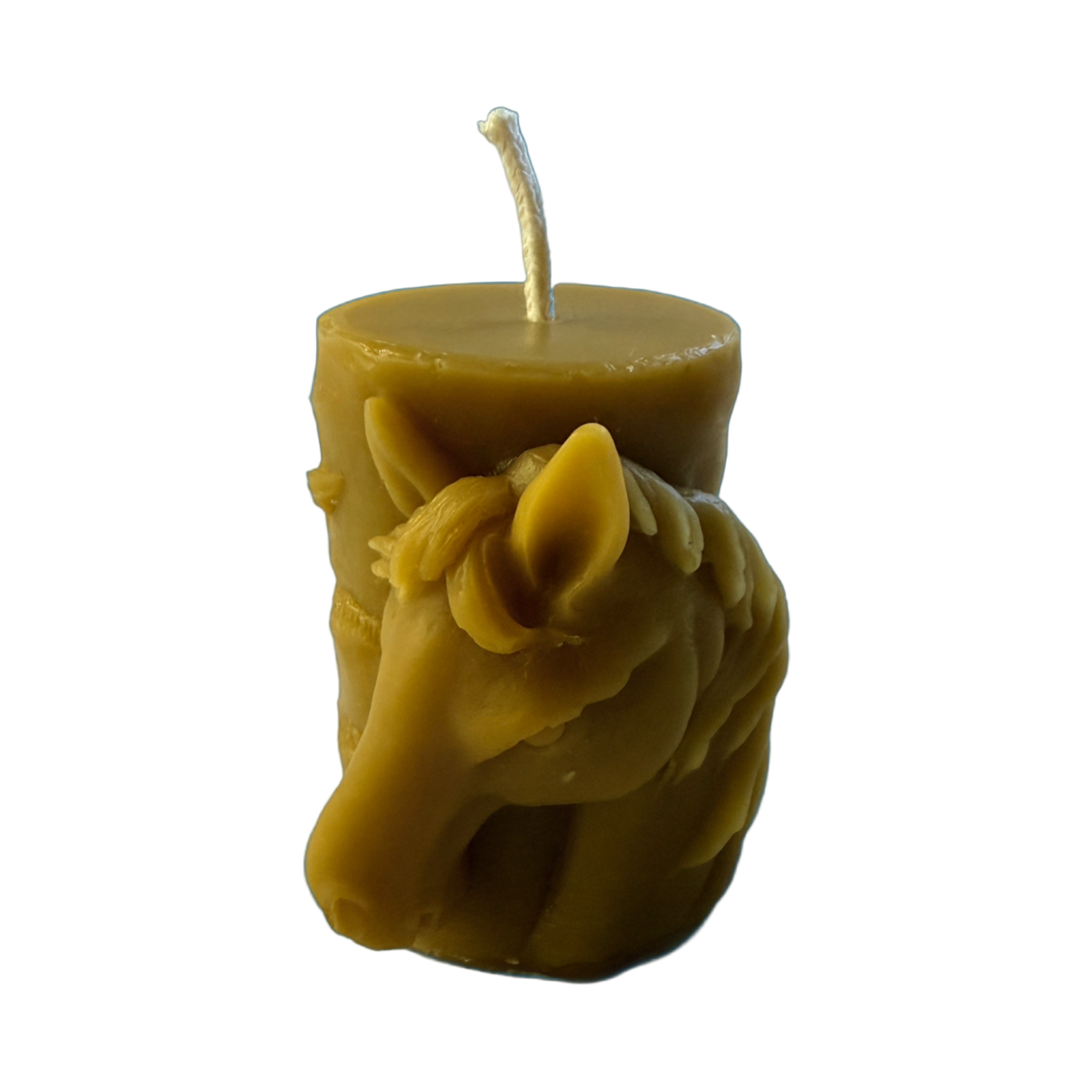Horse Pillar Gold Approx. 3" x 4" No added ingredients, just pure beeswax Very detailed and beautiful! Read more
